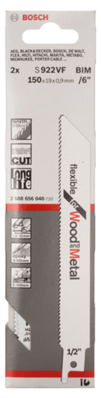 BOSCH SÄBELSÄGEBLATT S 922 VF FLEXIBLE FOR WOOD AND METAL 2ER-PACK (2608656040)