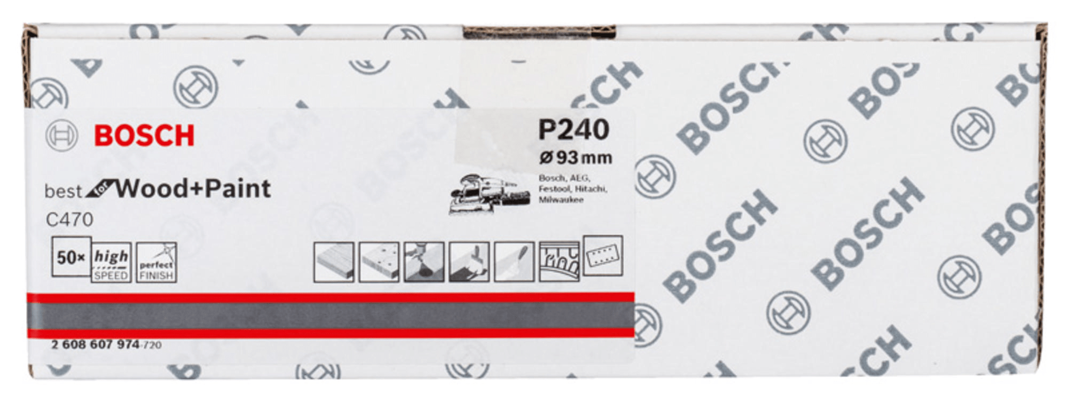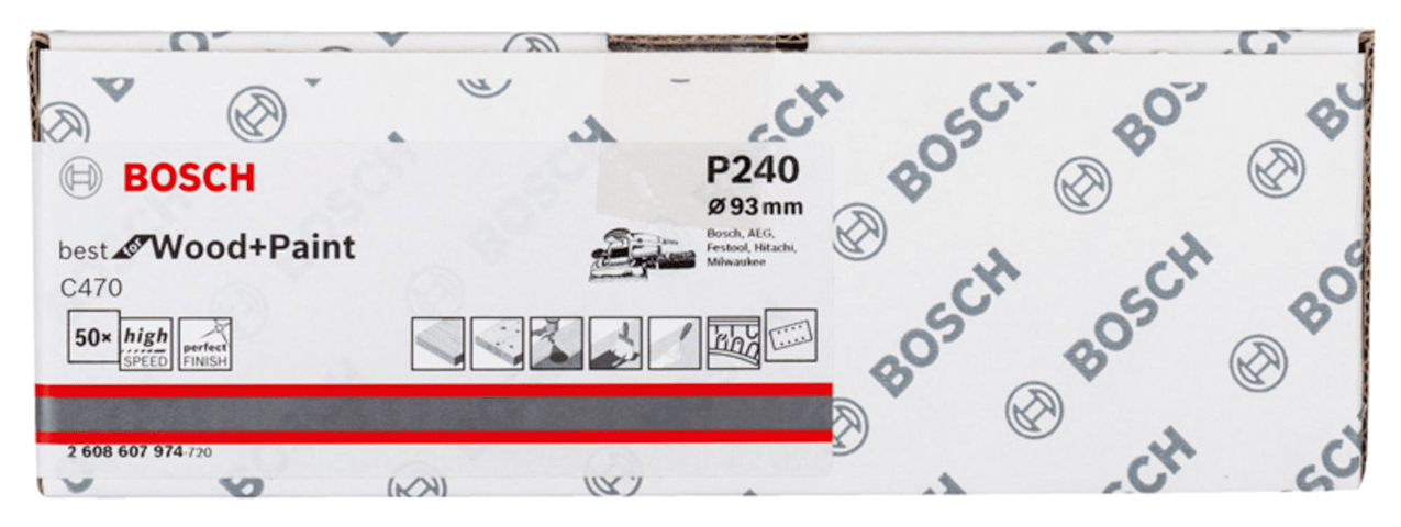 Bosch Schleifblatt C470, 93 x 186 mm, 240, 8 Löcher, Klett, 50er-Pack