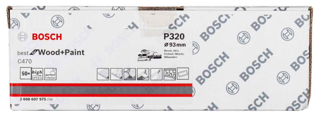 Bosch Schleifblatt C470, 93 x 186 mm, 320, 8 Löcher, Klett, 50er-Pack