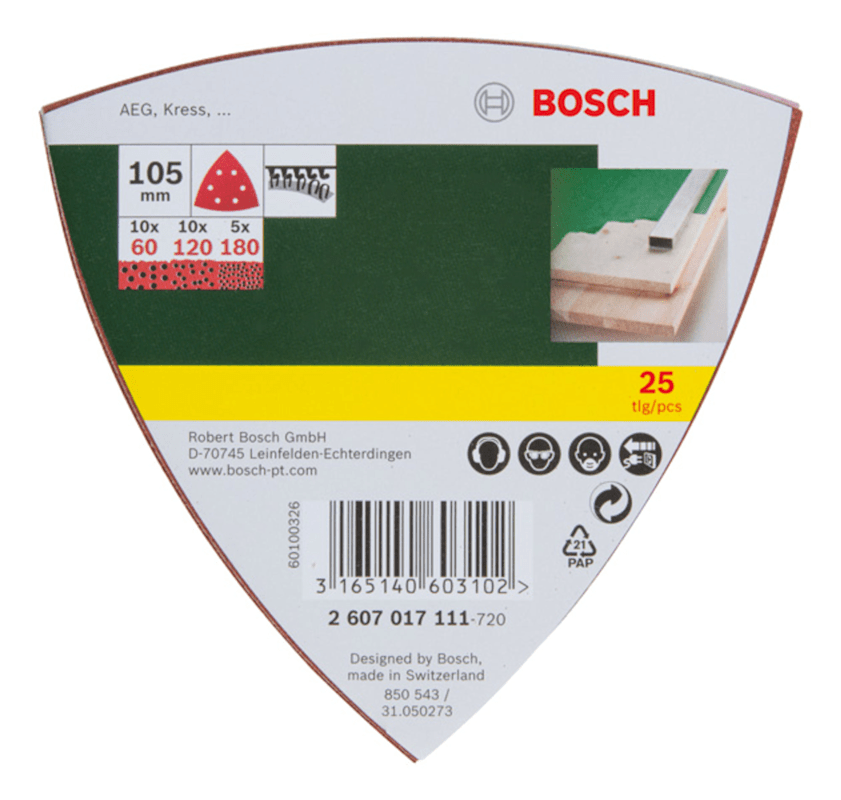 BOSCH SCHLEIFBLATT-SET DELTASCHLEIFER 105MM K60 120 180 6 LÖCHER 25ER-PACK ..