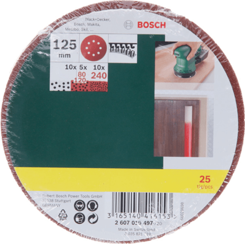 Bosch Schleifblatt-Set für Exzenterschleifer, 25-teilig, 8 Löcher, 125 mm, 80 - 240