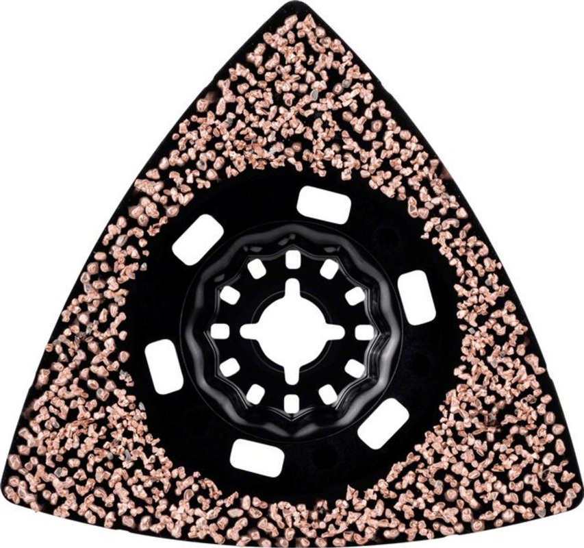 Hohe Lebensdauer beim Schleifen von verschiedensten Materialien! Die Delta-Form ermöglicht das Schleifen von Ecken und Kanten. Kleine, aber harte Schleifarbeiten zum Entfernen von altem Material und zum Vorbereiten von Oberflächen sind mit herkömmlichen Schleifmaschinen oder von Hand fast unmöglich zu erledigen. Selbst wenn du die Oberfläche erreichen kannst, reißt das Schleifpapier ein. Mit der EXPERT Sanding Plate kannst du jedoch mit deinem oszillierenden Multifunktionswerkzeug Ecken erreichen und schwierige Materialien schleifen. Die groben, offenen Körner des RT2 (Körnung 20) eignen sich am besten zum Entfernen von Mörtel hinter Fliesen, von Teppichkleber oder für die Grobbearbeitung von Holz. Der RT4 (Körnung 40) eignet sich am besten zum Entfernen von dickem Lack, er kann aber auch mit Mörtel und Kleber umgehen. Der RT6 (Körnung 60) ist der Lackspezialist, während der RT10 (Körnung 100) ideal zum Schleifen und Vorbereiten sauberer Holzoberflächen geeignet ist. Überragende Lebensdauer dank Bosch Carbide Technology.