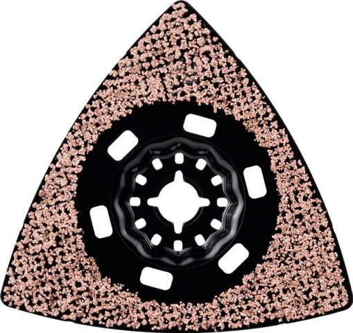 Hohe Lebensdauer beim Schleifen von verschiedensten Materialien! Die Delta-Form ermöglicht das Schleifen von Ecken und Kanten. Kleine, aber harte Schleifarbeiten zum Entfernen von altem Material und zum Vorbereiten von Oberflächen sind mit herkömmlichen Schleifmaschinen oder von Hand fast unmöglich zu erledigen. Selbst wenn du die Oberfläche erreichen kannst, reißt das Schleifpapier ein. Mit der EXPERT Sanding Plate kannst du jedoch mit deinem oszillierenden Multifunktionswerkzeug Ecken erreichen und schwierige Materialien schleifen. Die groben, offenen Körner des RT2 (Körnung 20) eignen sich am besten zum Entfernen von Mörtel hinter Fliesen, von Teppichkleber oder für die Grobbearbeitung von Holz. Der RT4 (Körnung 40) eignet sich am besten zum Entfernen von dickem Lack, er kann aber auch mit Mörtel und Kleber umgehen. Der RT6 (Körnung 60) ist der Lackspezialist, während der RT10 (Körnung 100) ideal zum Schleifen und Vorbereiten sauberer Holzoberflächen geeignet ist. Überragende Lebensdauer dank Bosch Carbide Technology.
