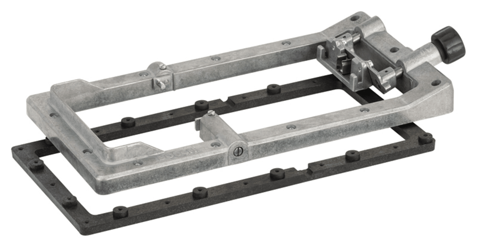 Der Schleifrahmen ermöglicht eine kontrollierte und gleichmäßige Abtragsrate beim Schleifen von großen Holzoberflächen. Mit Bürsten- und Kunststoffeinsatz. Ideal zum Planschleifen ohne Kippen, schützt