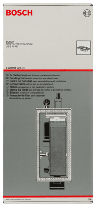 Der Schleifrahmen ermöglicht eine kontrollierte und gleichmäßige Abtragsrate beim Schleifen von großen Holzoberflächen. Mit Bürsten- und Kunststoffeinsatz. Ideal zum Planschleifen ohne Kippen, schützt die Oberfläche Einfaches und werkzeugloses Anbringen Passend zu: GBS 75 A. GBS 75 AE Professional. PBS 75 A. PBS 75 AE.