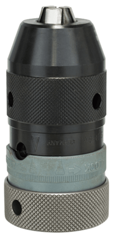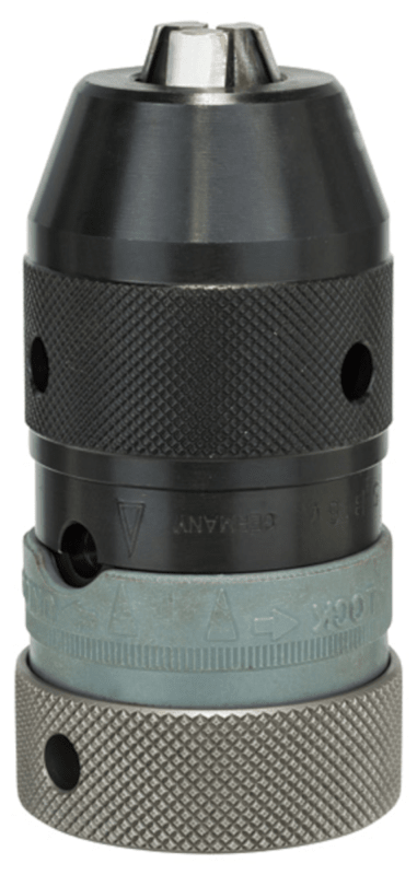 Das Schnellspannbohrfutter bietet eine bequeme Handhabung ohne Schlüssel für maximalen Bedienkomfort. Es erlaubt einfaches und schnelles Einspannen mit beiden Händen ohne Schlüssel zum sicheren Befestigen von Zylinder- oder Sechskantschaftbohrern. Schnellspannbohrfutter mit zwei Hülsen sind mit verschiedenen Aufnahmen (1/2" - 20, 3/8"- 24, 5/8" -16, 1/4"-Außensechskantschaft, B16 und SDS plus) verfügbar und mit den meisten gängigen Bohrern ohne Spindelarretierung kompatibel. Informationen zur Schlagfestigkeit oder zur Eignung für die Drehung gegen den Uhrzeigersinn finden Sie in den technischen Daten.