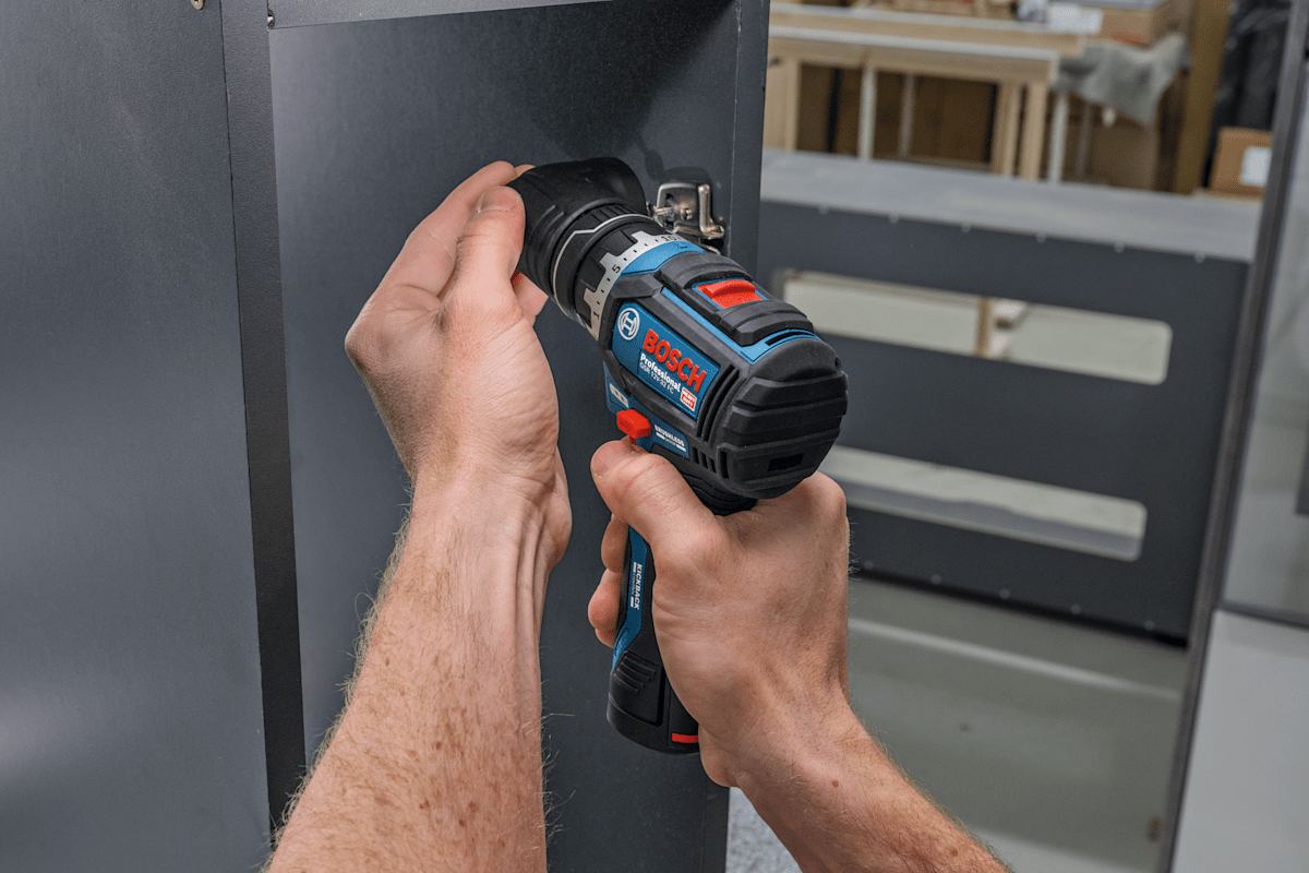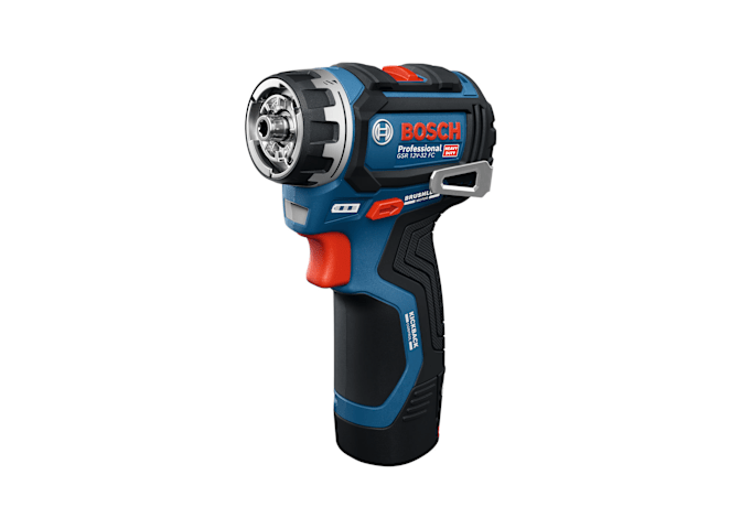 Schrauber GSR 12V-32 FC, Der kabellose PRO GSR12V-32 FC bietet mit Advanced KickBack Control beste Werkzeugkontrolle. Diese Technologie minimiert die Verletzungsgefahr, wenn ein Bohrer abrupt klemmt oder selbst wenn sich das Werkzeug langsam um seine Bohrachse dreht und die Haltekraft langsam zunimmt. Dieser Bohrschrauber ist dank des Bosch Professional FlexiClick Systems mit leicht austauschbaren Aufsätzen zum Bohren und Schrauben vielseitig einsetzbar. Das Werkzeug eignet sich aufgrund seiner sehr kompakten Bauweise ideal zum Bohren und Eindrehen von Schrauben auf engstem Raum. Mit dem einzigartigen Bohrhammeraufsatz PRO GFA12-H kann das Gerät in einen Bohrhammer mit SDS plus verwandelt werden, der für das Hammerbohren bis Ø10 mm in Beton geeignet ist. Präzises Arbeiten in der Nähe von Kanten und Wänden gelingt mit dem Exzenteraufsatz PRO GFA12-E ganz einfach, während der Winkelaufsatz PRO GFA 12-W den Bohrschrauber zum Winkelbohrer macht. Diese Aufsätze können in einem 360°-Winkel in 16 verschiedenen Positionen arretiert werden, ohne dass sie vom Werkzeug enternt werden müssen. FlexiClick-Aufsätze können spezielle Werkzeuge für gelegentliche Anwendungen ersetzen, wodurch weniger Gewicht auf der Baustelle getragen werden muss. Das Bosch Professional FlexiClick System: Perfekt gerüstet für professionelle Arbeit. Der PRO GSR12V-32 FC ist perfekt für alle Schraub- und Bohrarbeiten in Holz, Metall und, in Kombination mit dem PRO GFA 12-H, sogar in Beton, Mauerwerk und Stein. Weitere Informationen: Der PRO GSR12V-32 FC ist mit Advanced KickBack Control, einem bürstenlosen Motor, einem hellen Arbeitslicht und einem Gürtelclip ausgestattet. L-BOXX 102 (1 600 A01 2FZ). Metallbohrfutteraufsatz GFA 12-M (1 600 A03 7MD). Bithalteraufsatz GFA 12-X (1 600 A00 F5J). Exzenteraufsatz GFA 12-E (1 600 A00 F5L). Winkelaufsatz GFA 12-W (1 600 A00 F5K). Bohrhammeraufsatz GFA 12-H (1 600 A02 4LN). Zusatzhandgriff. Tiefenanschlag (1 613 001 009)