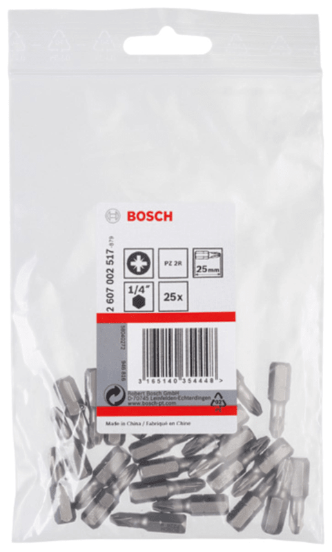 Meesenburg Artikelbezeichnung: BOSCH SCHRAUBERBIT EXTRA-HART REDUZIERT PZ2R 25MM 25ER-PACK (2607002517)