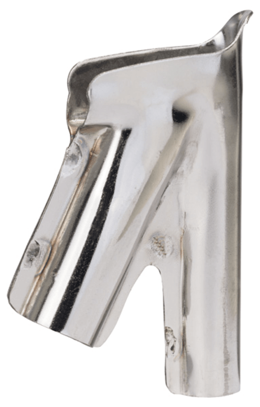 Der Schweißschuh für Heißluftgebläse ist eine Düse mit Seitenkanal für die Zuführung von Kunststoffschweißdraht mit einem Durchmesser bis zu 5 mm. Er sollte in Verbindung mit einer Reduzierdüse mit ei