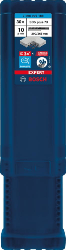 SDS-plus Hammerbohrer plus-7X EXPERT, 30er-Großpack• 4 Schneiden und Vollhartmetall-Kopf mit 3-mal höherer Lebensdauer • Unzerstörbare Verbindung zwischen Spitze und Wendel • 180°-Schneidkanten ermö