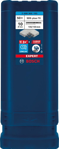 SDS-plus Hammerbohrer plus-7X EXPERT, 50er-Großpack• 4 Schneiden und Vollhartmetall-Kopf mit 3-mal höherer Lebensdauer • Unzerstörbare Verbindung zwischen Spitze und Wendel • 180°-Schneidkanten ermö