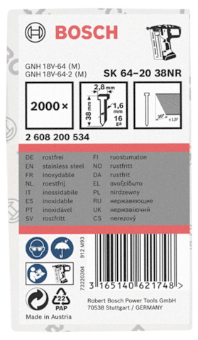 Bosch Senkkopf-Stift SK64 20NR, 38 mm Edelstahl, 2000 Stk.