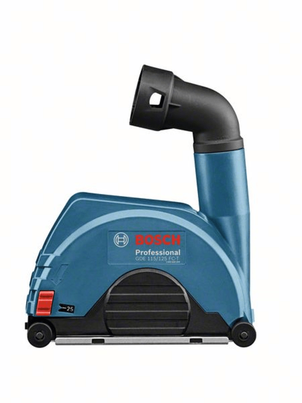 Systemzubehör GDE 115/125 FC-T, Die GDE 115/125 FC-T Professional ist Boschs „Full Cover”-Absaughaube für eine Vielzahl von Bosch Professional Winkelschleifern mit werkzeuglos einstellbarer Standardschutzvorrichtung und 115 mm oder 125 mm Scheibendurchmesser. Ihr geschlossenes Design sorgt für eine optimierte Staubabsaugung und damit für nahezu staubfreies Arbeiten. Die Haube ist für einfaches Handling direkt am Winkelschleifer angebracht. Zusätzlich mit einstellbarer Schnitttiefe und integrierten Rollen für Arbeiten, für die Präzision erforderlich ist. Die Absaughaube ist kompatibel mit dem Bosch Professional Click & Clean System.