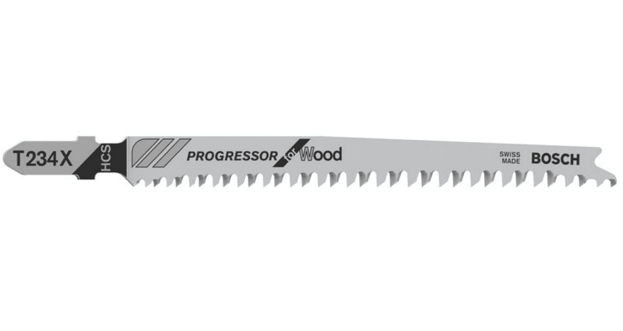 Das T 234 X Progressor for Wood Stichsägeblatt für den Gebrauch bei dickem oder dünnem Holz macht saubere gerade Schnitte. Die Zahngeometrie mit progressiv ansteigender Zahnteilung ermöglicht den Gebr