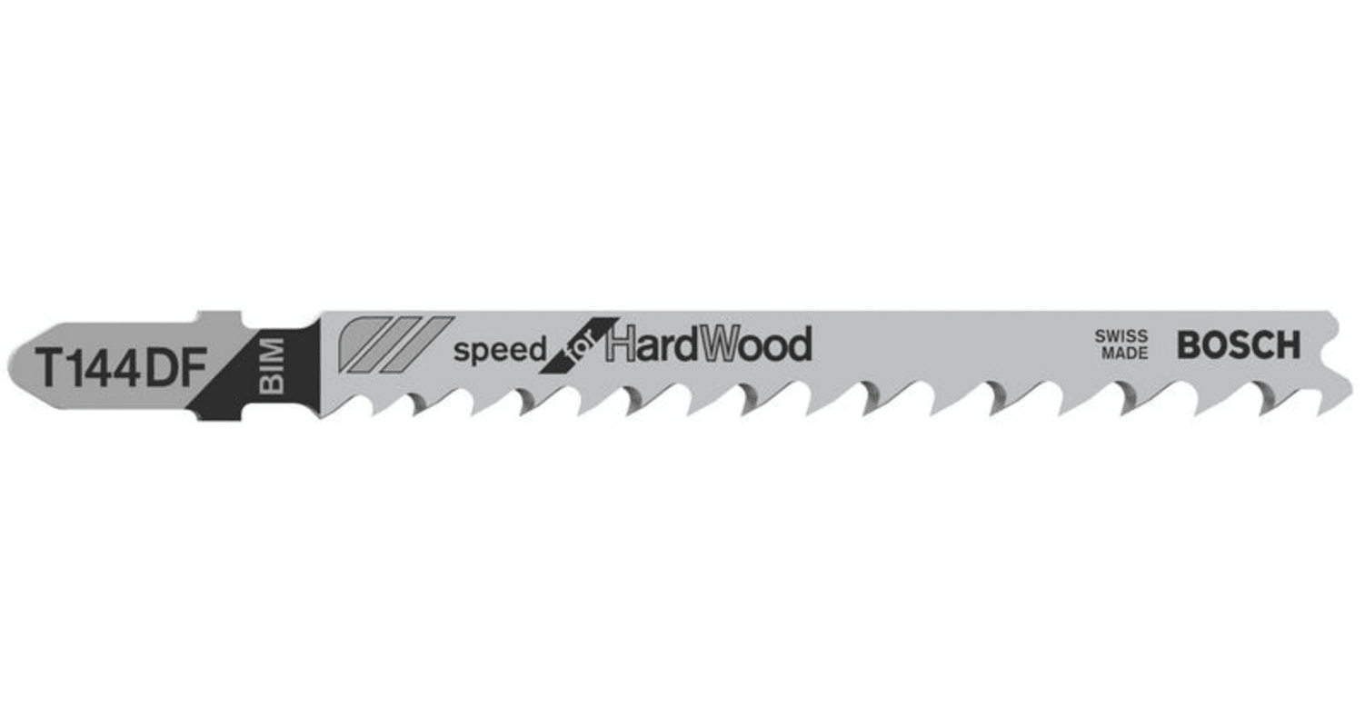 Das T 144 DF Speed for Hard Wood Stichsägeblatt macht schnelle gerade Schnitte in Holz. Die scharfgeschliffenen Zähne sind geschränkt, wodurch schnelle Schnitte ermöglicht werden. Die Zahnleiste aus gehärtetem HSS (Hochgeschwindigkeitsstahl) und BIM (Bimetall) ist mit hochelastischem HCS (Kohlenstoffstahl) verstärkt, wodurch das Blatt zum Schneiden von harten Materialien, wie Hartholz und abrasiven Holzwerkstoffen, geeignet ist. Dieses Produkt verfügt über eine große progressive Zahnteilung (4-5,2 mm) und schneidet eine Vielzahl an Massivholzmaterialien mit einer Dicke von 5-50 mm.