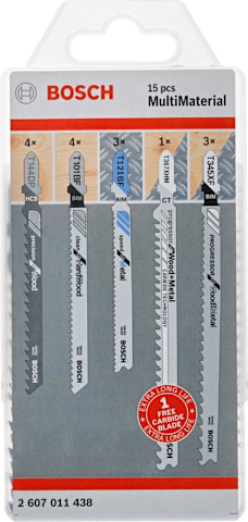 Bosch 15‑tlg. Stichsägeblatt-Set für Multimaterial, T-Schaft