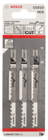 Bosch Stichsägeblatt U 101 D Clean for Wood, 3er-Pack