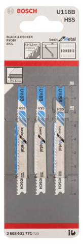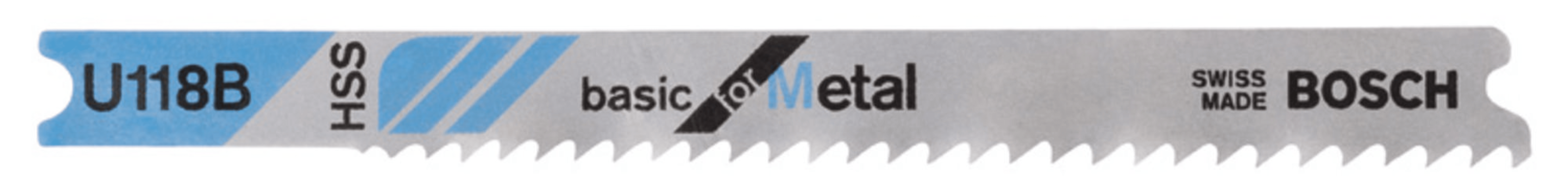 Das U 118 B Basic for Metal Stichsägeblatt macht gerade Schnitte in Metall. Die gefrästen, gewellten Zähne sind ideal für Schnitte ohne besondere Anforderungen. Das Blatt aus hochwertigem gehärtetem H