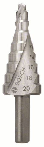 Meesenburg Artikelbezeichnung: BOSCH STUFENBOHRER 3-FLÄCHEN-SCHAFT HSS 4 - 20MM 9 STUFEN 2608597519