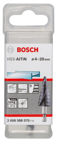 Bosch Stufenbohrer HSS-AlTiN, 4 - 20 mm, 4 mm, 70,5 mm, 9 Stufen
