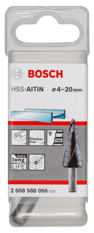 Meesenburg Artikelbezeichnung: BOSCH STUFENBOHRER HSS-ALTIN 4-20MM 6 MM 50MM 9 STUFEN (2608588066)