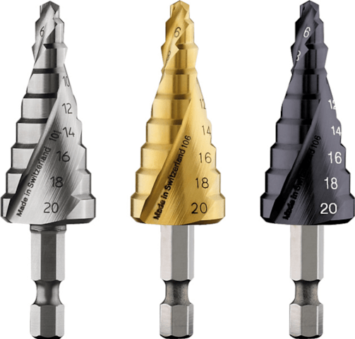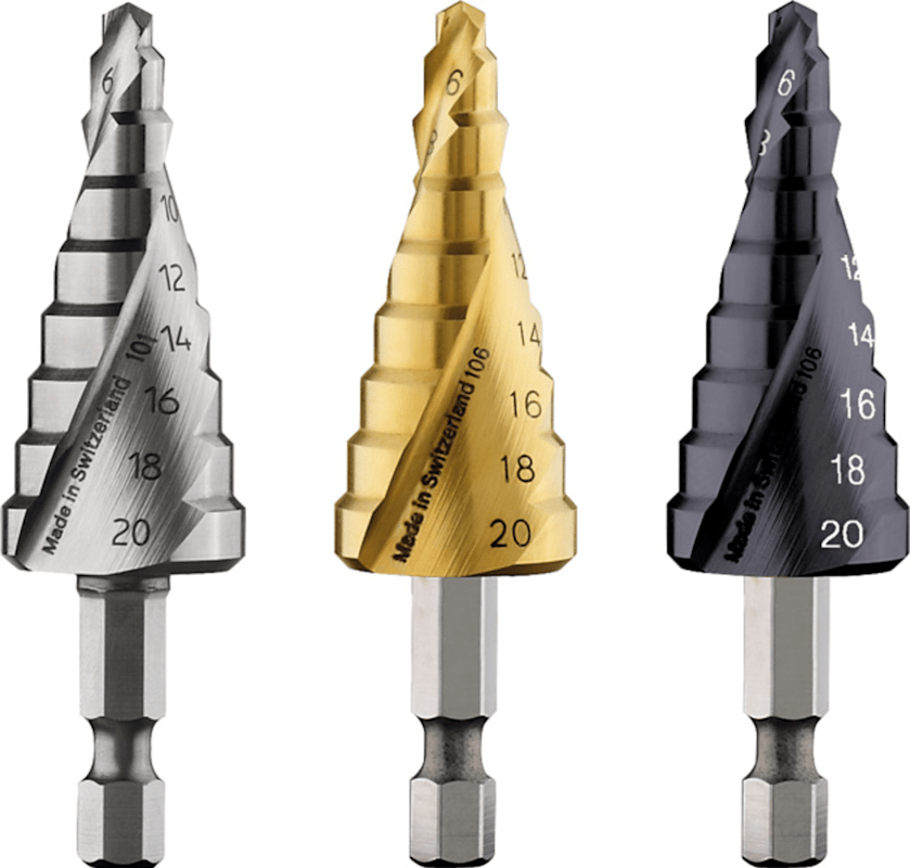 Der HSS-Stufenbohrer bohrt glatt und gratfrei Löcher mit verschiedenen Durchmessern. Er ist ideal zum Bohren und Vergrößern von Löchern geeignet. Ankörnen ist nicht erforderlich, da die Bohrspitze mit