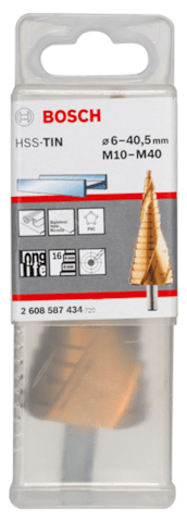 Bosch Stufenbohrer HSS-TiN, für Kabelverschr., M10 - M40, 10 mm, 125,5 mm, 12 Stufen