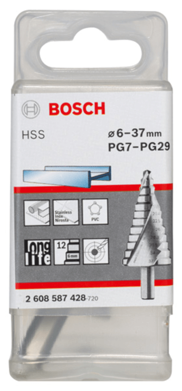 Meesenburg Artikelbezeichnung: BOSCH STUFENBOHRER HSS 6-37MM 12 STUFEN 10MM 93MM (2608587428)