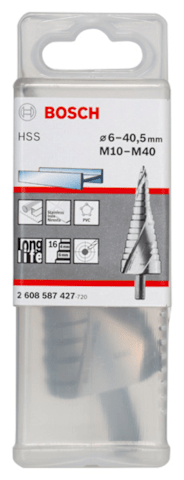 Bosch Stufenbohrer HSS, für Kabelverschraubungen, M10-M40, 10 mm, 125,5 mm, 16 Stufen