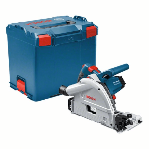 Tauchsäge GKT 55 GCE. Die kabelgebundene Tauchsäge GKT 55 GCE Professional liefert extrem präzise, saubere Schnitte in einer Vielzahl von Materialien. Dank hochwertiger Maschinenkomponenten, Präzisionssägeblatt und passendem Führungsschienensystem sind extrem präzise Ergebnisse sichergestellt. Das effiziente Staubabsaugsystem der Säge und das schallreduzierte Sägeblatt sorgen besonders in Innenräumen für komfortables Arbeiten. Darüber hinaus ermöglicht die regelbare Drehzahleinstellung Schnitte in einer Vielzahl von Materialien. Dieses Werkzeug eignet sich für Format- und Tauchschnitte in Holz, Holzverbundwerkstoffen, Platten und Plattenwerkstoffen sowie in Aluminium und Acrylglas. Es ist kompatibel mit dem Bosch Click & Clean-Staubabsaugsystem sowie den Führungsschienensystemen Festool, Mafell und Makita von Bosch. Die GKT 55 GCE Professional zeichnet sich ferner durch Merkmale wie konstante Drehzahl, integrierten Staubauslass, Drehzahlvorwahl, Spindelarretierung, Überlastschutz und Sanftanlauf aus. Im Lieferumfang enthalten: L-BOXX 374 (1 600 A01 2G3), 1/1 L-BOXX-Einlage für Gerät (1 600 A00 2UK), 1x Kreissägeblatt, Top Precision Best for Wood, 165 x 1,8/1,3 x 20 mm, 48 (2 608 642 384), Innensechskantschlüssel
