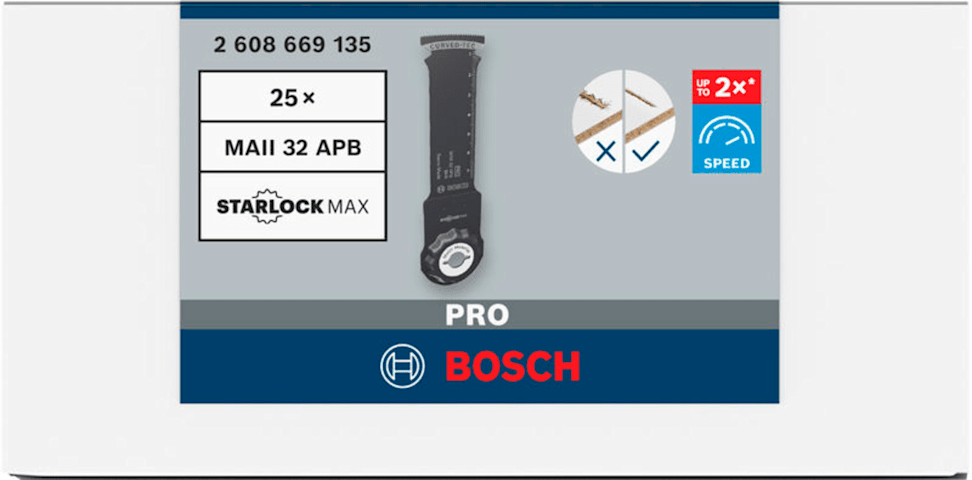 PRO MAII 32 APB TauchsägeblattFür oszillierende MultifunktionswerkzeugeSchneidet bis zu 2x schneller als eine Bosch AIZ 20 AB Blatt für MultifunktionswerkzeugeProfis, die mit Multifunktionswerkzeugen