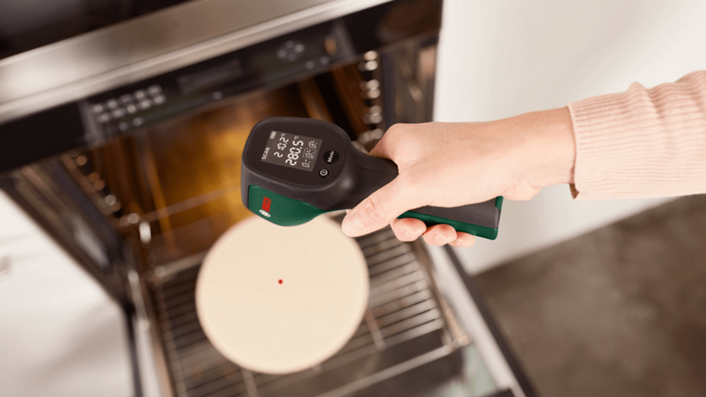 Thermodetektor UniversalTemp. Kein Schätzen mehr – genaue Oberflächentemperaturmessungen im Handumdrehen. Einfach und präzise – für alltägliche Temperaturmessungen bei Gefrierschränken und Fenstern bis zu Pizzasteinen. Infrarot-Laser-Technologie mit großem Messumfang von -30 °C bis +500 °C. Individuelles und kontinuierliches Messen. Auswahl zwischen drei Messmodi für genauere Ergebnisse. Gut lesbares Hintergrund-Display mit zwei Messwerten als Referenz. Produkt mit Nachhaltigkeitsmerkmalen, weitere Informationen siehe unten. Karton. 2 x Batterie 1,5V LR06 (AA)