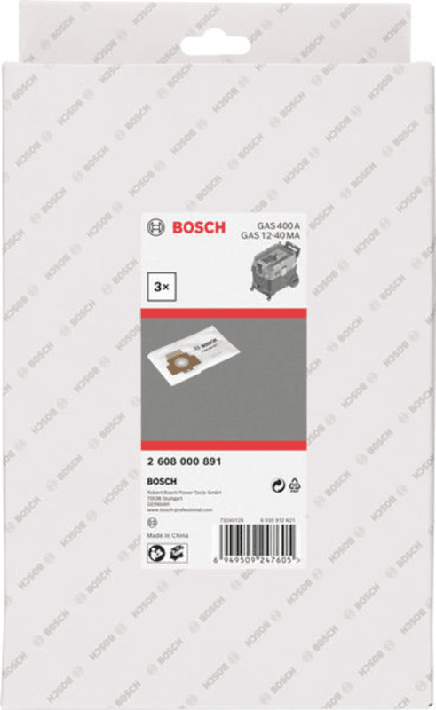 Der Vliesfilterbeutel ist ein Ersatzbeutel zum Trockensaugen. Der Beutel aus Vlies sammelt ganz einfach Staub und bewahrt ihn auf. Er bietet eine bessere Haltbarkeit, Leistung und Sicherheit im Vergleich zu Standard-Papiertüten. Geeignet für das Trockensaugen von Staub der Klassen L und M sowie für einfaches Nasssaugen. Wenn Sie einen Vliesfilterbeutel verwenden, achten Sie darauf, dass die automatische Filterreinigung ausgeschaltet ist, um eine Beschädigung des Vliesfilterbeutels zu vermeiden. Passend zu: GAS 12-40 MA (0 601 9M0 1.). GAS 400 A (0 601 9M0 0.) Professional.