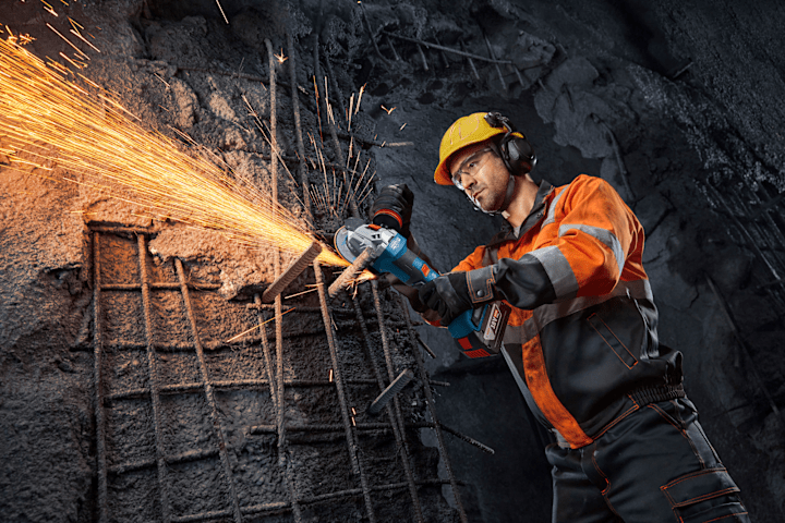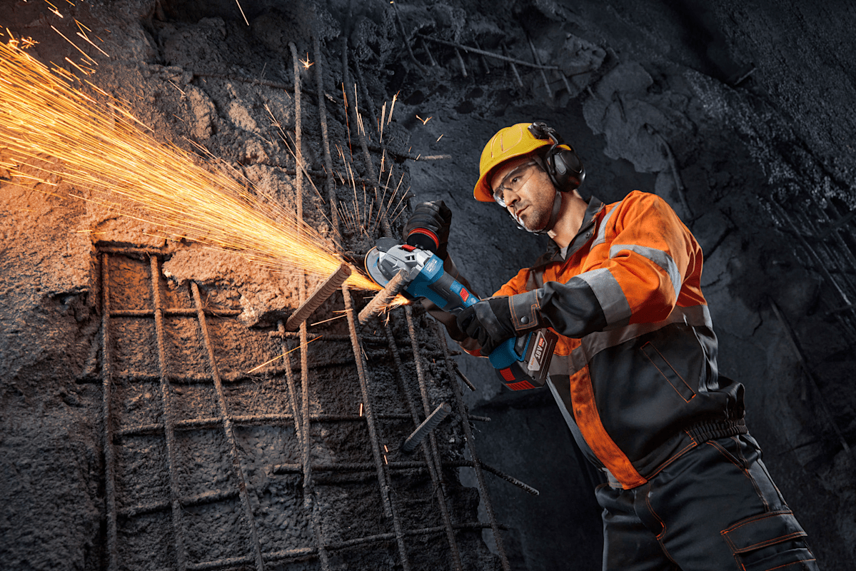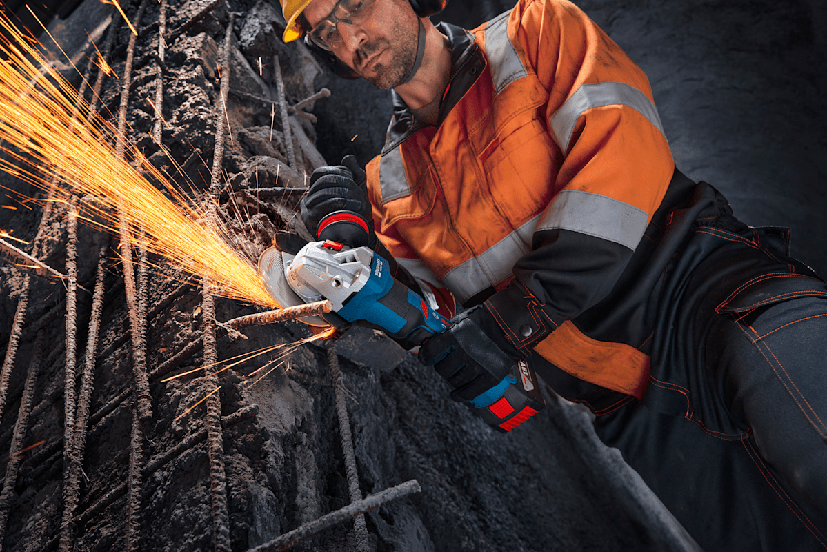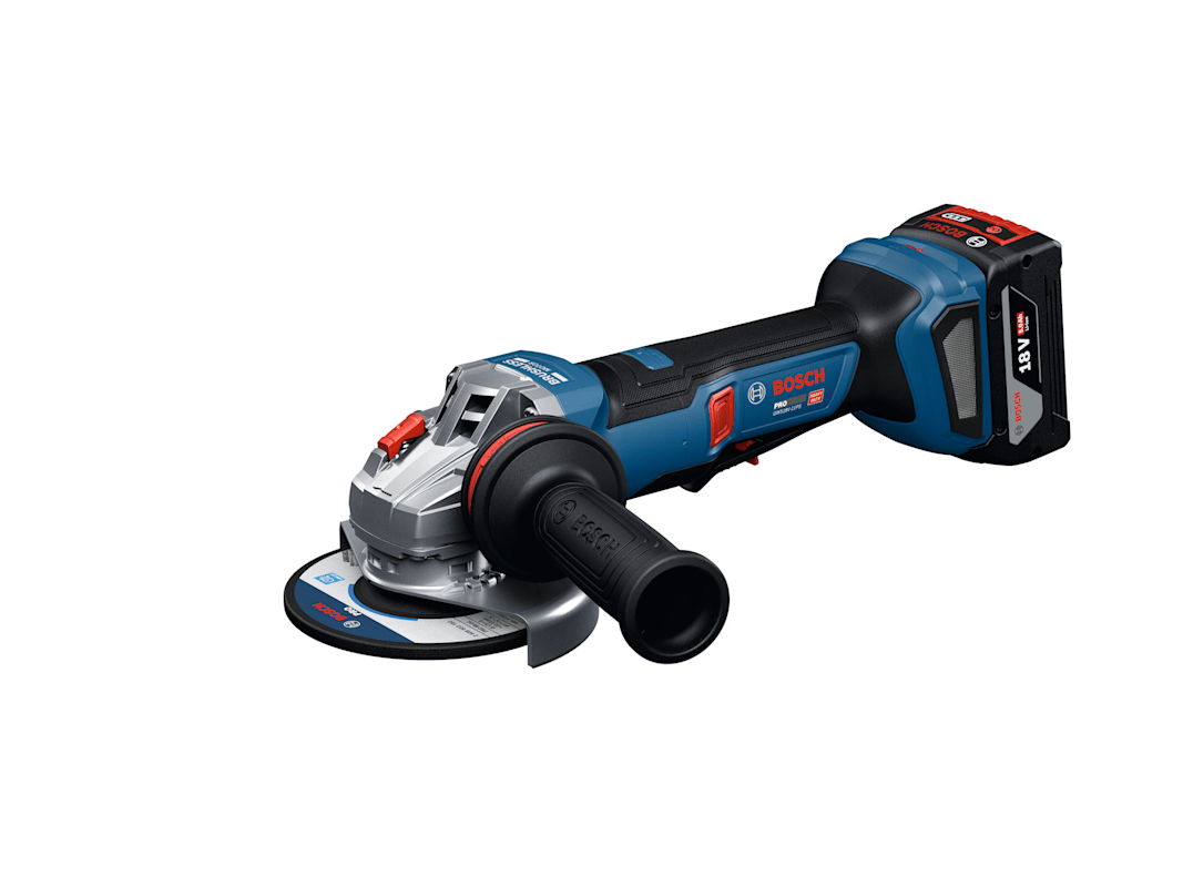 Winkelschleifer GWS18V-11PS, Der PRO GWS18V-11PS bietet umfassende Anwenderschutzfunktionen, einschließlich KickBack Control, Intelligent Brake System, Wiederanlaufschutz und Paddelschalter. Dieser leistungsstarke Akku-Winkelschleifer liefert die vergleichbare Leistung eines 1.100-W-Kabelgeräts. Es ist äußerst robust und sorgt so für eine lange Lebensdauer. Der PRO GWS18V-11PS ist ergonomisch und einfach zu bedienen dank seines langen, schlanken Griffs und seines komfortablen Anti-Vibrations-Handgriffs, der Ermüdung verringert. Er verfügt außerdem über eine schlüssellose Schutzhaube und eine Mutter, die für einfache und bequeme Bedienung sorgt. Darüber hinaus erhältst du mit dem ergonomisch drehbaren Griff, der sowohl das Trennen als auch das Schleifen komfortabler macht, eine erhöhte Flexibilität. Der PRO GWS18V-11PS ist für das Trennen von Bewehrungsstäben, Metall und Blechen sowie das Schleifen von Metallen geeignet. Er ist für leistungsstarke Bosch Akkus optimiert. Der PRO GWS18V-11PS verfügt über einen robusten Metallflansch und eine 6-stufige Drehzahlauswahl. Schnellspannmutter (1 600 A01 6DN). Spannflansch (2 605 703 014). Vibration Control-Zusatzhandgriff (1 602 025 0A0). Schutzhaube (ET-Nr.: 1 600 A00 XK9). L-BOXX 136 Größe 4 (1 605 438 1EN). Schutzhaube (1 600 A02 1MH)