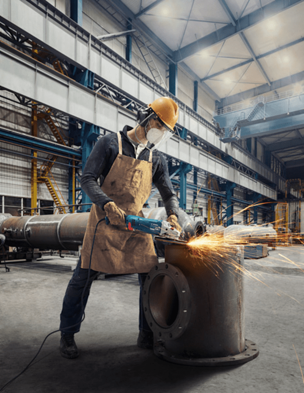 Winkelschleifer GWS 24-230 PZ. Der kraftvolle Winkelschleifer GWS 24-230 PZ Professional ist für erhöhten Anwenderschutz mit dem revolutionären Staubschutzsystem CYCLON TECH und mit Sicherheitsfunktionen ausgestattet. Ein robuster 2.400-W-Motor ermöglicht solides Trennen und Schleifen. Das eingebaute Staubschutzsystem CYCLON TECH erhöht die Werkzeuglebensdauer, indem es bis zu 90 % des Staubs am Winkelschleifer sammelt. Ein reibungsloserer Motorbetrieb und ein Anti-Vibration-Zusatzhandgriff sorgen für höheren Komfort und Anwenderschutz. Dieser Winkelschleifer ist ideal zum Trennen von Metall, Schleifen von Stein und für die Anwendung bei vielen anderen Materialien. Er ist mit der Bosch Absaughaube GDE 230 FC-S kompatibel. Der GWS 24-230 PZ Professional bietet einen PROtection-Schalter für erhöhten Anwenderschutz. Zweilochschlüssel (1 607 950 061); Aufnahmeflansch (ET-Nr. 2 605 703 014); Spannmutter (1 603 345 043); Karton; Abdeckschutz (1 619 P15 622); Zusatzhandgriff (1 602 025 030)