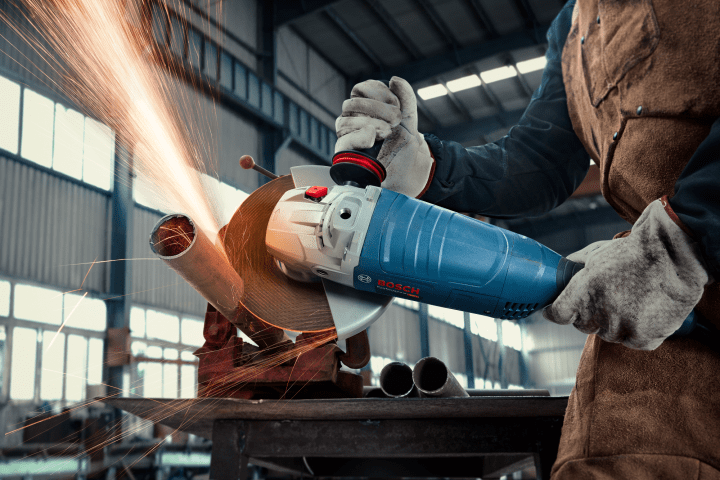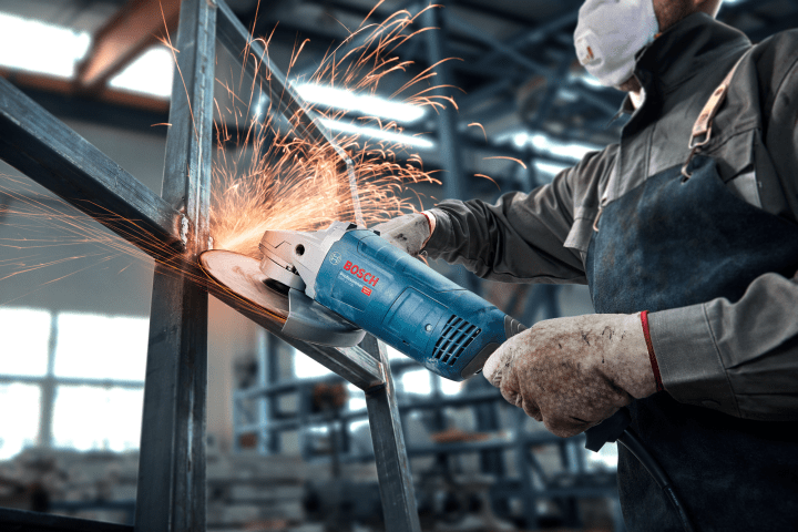 Die Suche nach einem benutzerfreundlichen und komfortablen und gleichzeitig leistungsstarken Winkelschleifer kann eine Herausforderung sein. Der GWS 27-230 PR Professional erledigt dank seiner hohen Leistung schwierige Arbeiten schneller. Sein kraftvoller 2.700-W-Motor sorgt für mehr Effizienz, indem er mehr Material in kürzerer Zeit abträgt. Der Haupthandgriff sorgt für bequemes Handling und lässt sich auf Knopfdruck um 90° drehen. So hast du immer den perfekten Griff – ob fürs Schleifen oder Trennen. Die Sperrfunktion gewährleistet, dass das Werkzeug erst startet, wenn der Haupthandgriff vollständig um 90° gedreht und mit einem „Klick“ eingerastet ist. Darüber hinaus ist der GWS 27-230 PR Professional mit KickBack Control, PROtection-Schalter und Vibration Control ausgestattet.