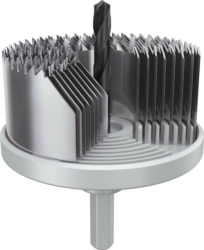 Spezielle Zahnform für schnelle Schnitte Wenn Sie Deckenstrahler installieren müssen, benötigen Sie eine zuverlässige Lochsäge zum Schneiden von Holz und Trockenbauwänden. Mit der Lochsäge mit Adapter für Holz- und Trockenbauwände können Sie Ihre Arbeit schnell erledigen.