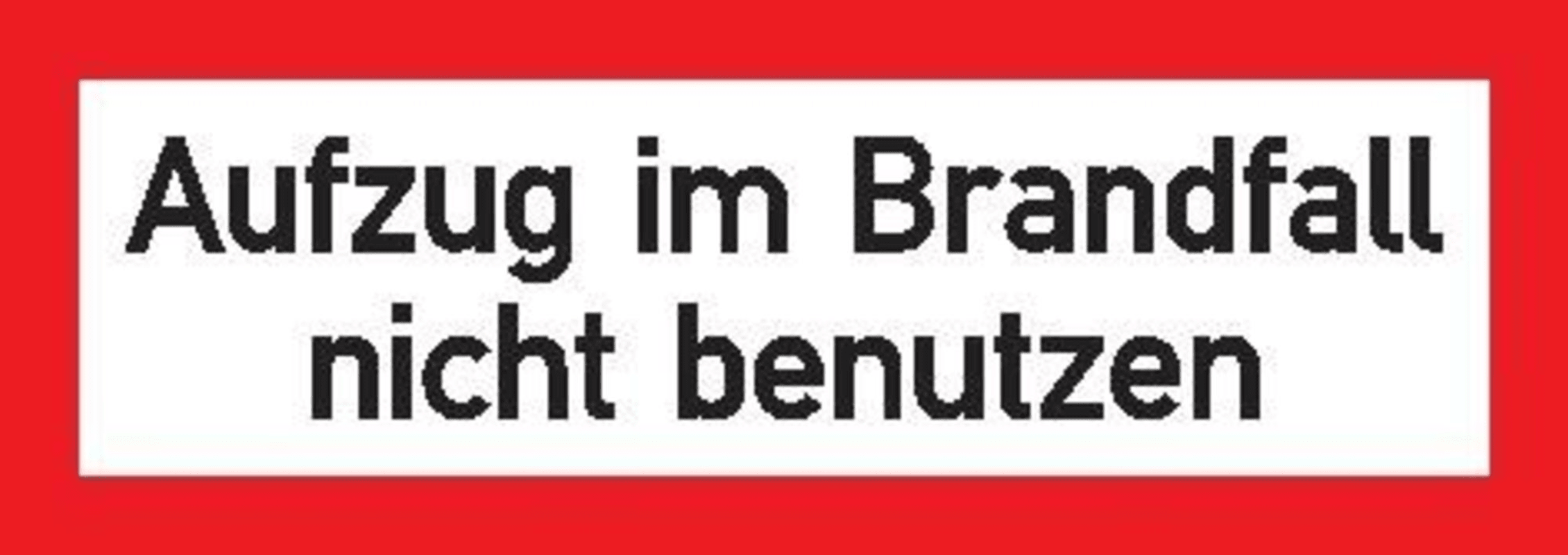 Hinweisschild, Aufzug im Brandfall nicht benutzen, langnachleuchtend • DIN 4066-D1 • Langnachleuchtend, DIN 67510-4 Unterklasse C