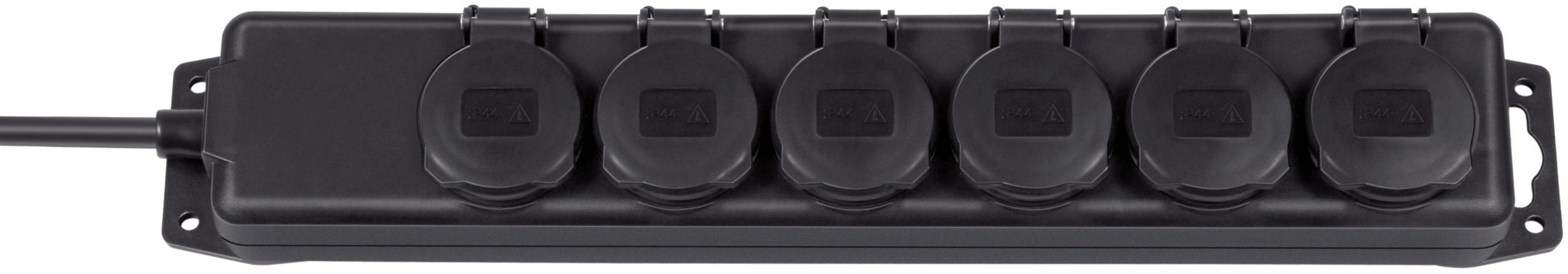 Steckdosenverteiler IP44 6-fach (Steckdosenleiste für den Baustelleneinsatz und den ständigen Einsatz im Freien, 2 m Kabel) • Outdoor Steckdosenleiste 6-fach mit selbstschließenden Deckeln - Steckdosen in praktischer 45°-Anordnung • Outdoor-Steckdosenleiste mit Schraublöchern zur Befestigung • Fremdkörper- und spritzwassergeschützt, Schutzklasse IP44 • Ideal geeignet für den Einsatz im Freien IP44, beispielsweise auf der Baustelle oder rund ums Haus Lieferumfang: 1 x Steckdosenverteiler IP44 mit 2 m Kabellänge - in bester Qualität von brennenstuhl®