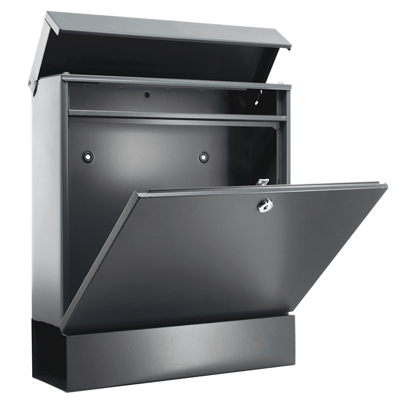 Vollflächig verzinkt hochwertig beschichtet|• Mit integrierter Zeitungsbox|• In zwei Farben erhältlich Weiß und Anthrazit|• Mit Öffnungsstopp|• Einwurf DIN C4