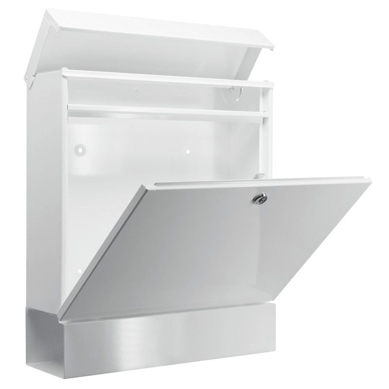 Vollflächig verzinkt hochwertig beschichtet|• Mit integrierter Zeitungsbox|• In zwei Farben erhältlich Weiß und Anthrazit|• Mit Öffnungsstopp|• Einwurf DIN C4