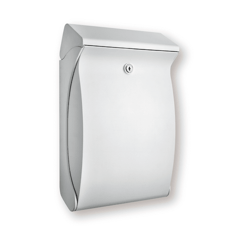Kompakter Vollkunststoff-Briefkasten. Pfiffige, ansprechende Form. Simple Funktionalität. Standardfarbe Weiss. Premium Modell mit zusätzlicher Beschichtung in der Farbe Silber lieferbar, Einwurf Forma