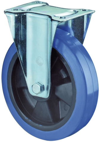 • Stahl-Gehäuse • Lauffläche Elastik-Reifen, blau • Kunststoff-Radkörper • Rollenlager Mit Fadenschutz bei Rad-Ø 100 mm