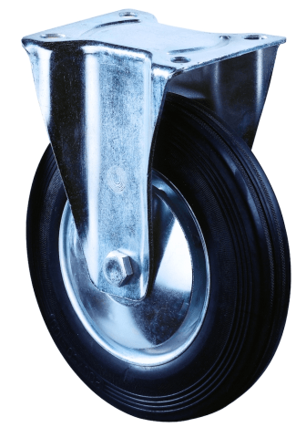 Bockrolle• Zweireihiger Kugelkranz im Gabelkopf • Radkörper mit Stahlfelge und Fadenschutz • Rollenlager • Material Gabel: Stahlblech, verzinkt-chromatiert • Material Lauffläche: Gummi • Material