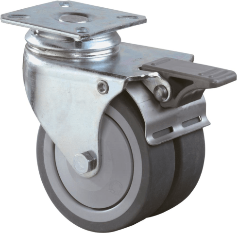 Meesenburg Artikelbezeichnung: BS DOPPELLENKROLLE M.TOTALFESTSTELLER B 120 GUMMIRAD BLAUGRAU 50MM B120.A85.050