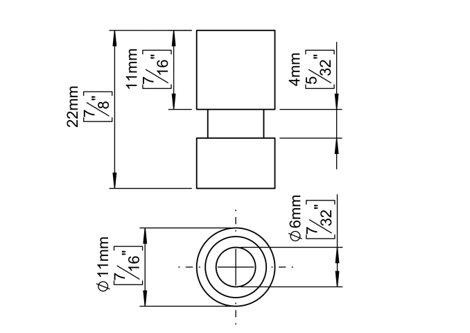Knud Holscher Kollektion, Buchse für Stifte 14&19, versenkt, Ø10,9x22x5,5mm aus Messing. 20 Jahre Garantie.