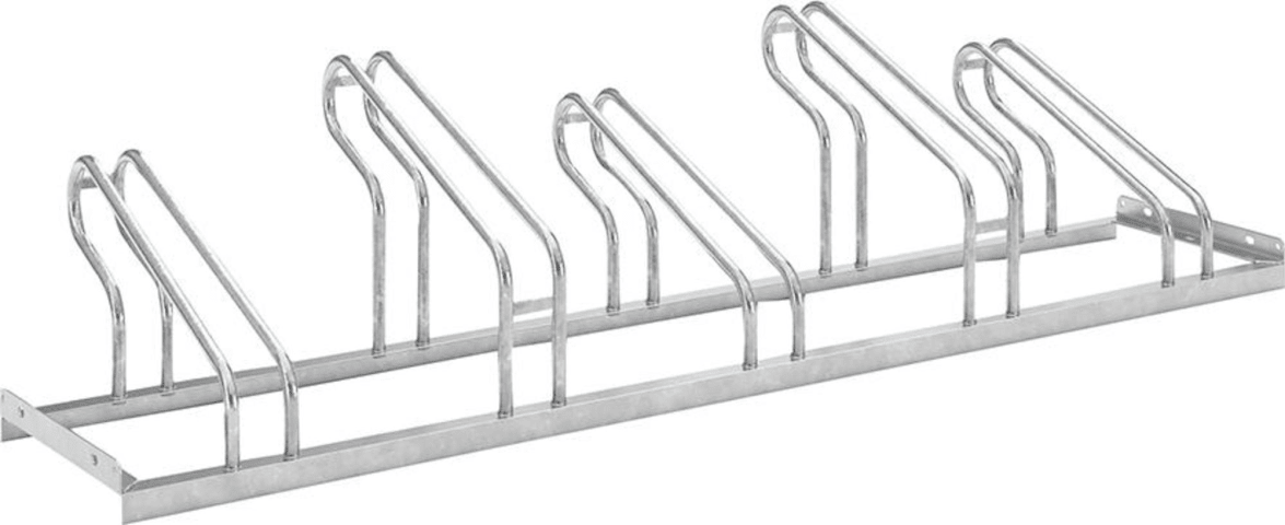 Bügelparker, einseitige Radeinstellung, verschweißt • Fahrräder können abwechselnd in Tief-/Hocheinstellung platzsparend geparkt werden • Material: verzinkte Stahlkonstruktion aus Rundrohrbügeln • Radabstand: 350 mm • Radeinstellung: einseitig • Bügelabstand für Reifenbreite bis 55 mm • Stellraumtiefe Radstellung 90°, einseitig: ca. 1850 mm Lieferung: Fertig verschweißt und montiert Hinweis: Vorbereitet zur Reihenverbindung und Bodenbefestigung