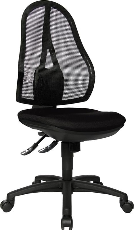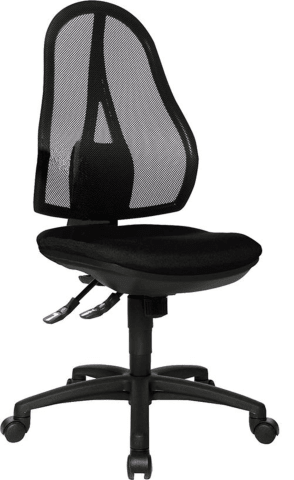 • Rückenlehne: mit atmungsaktiver Netzbespannung, über Rastermechanik in Höhe und Neigung verstellbar