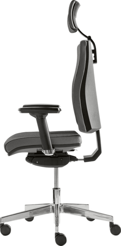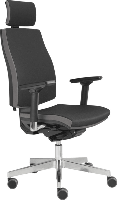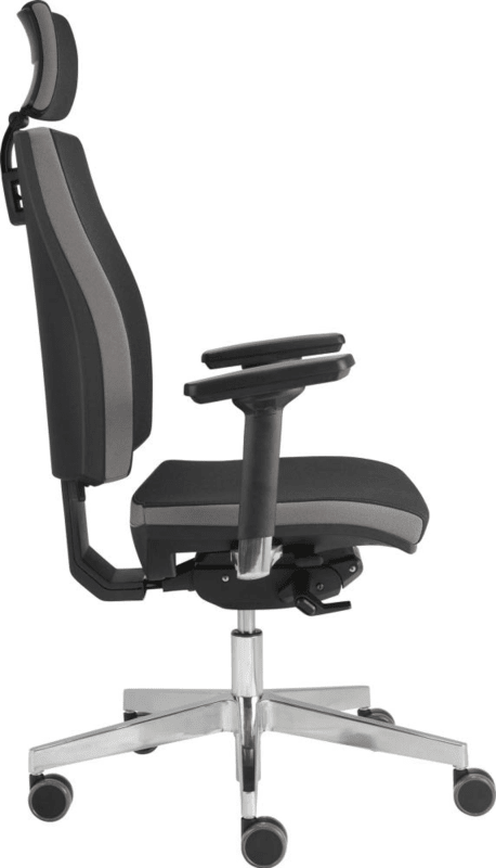 Bürodrehstuhl Premium • Bezugsstoff: 100 % Polyester, zweifarbig mit Ziernähten, schwarz-grau • Rückenlehne: stufenlose Höhenverstellung per Knopf, Arretierung an 5 Punkten möglich • 2D-Kopfstütze: