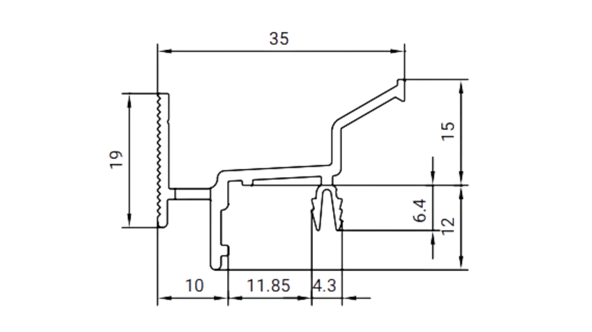 Die Regenschutzschiene RD 19 K Stil ist eine Sattelschiene für eine Falzbreite von 19 Millimetern ausgelegt und für die Sanierung denkmalgeschützter Gebäude geeignet. Die Ausführung erfolgt über das E